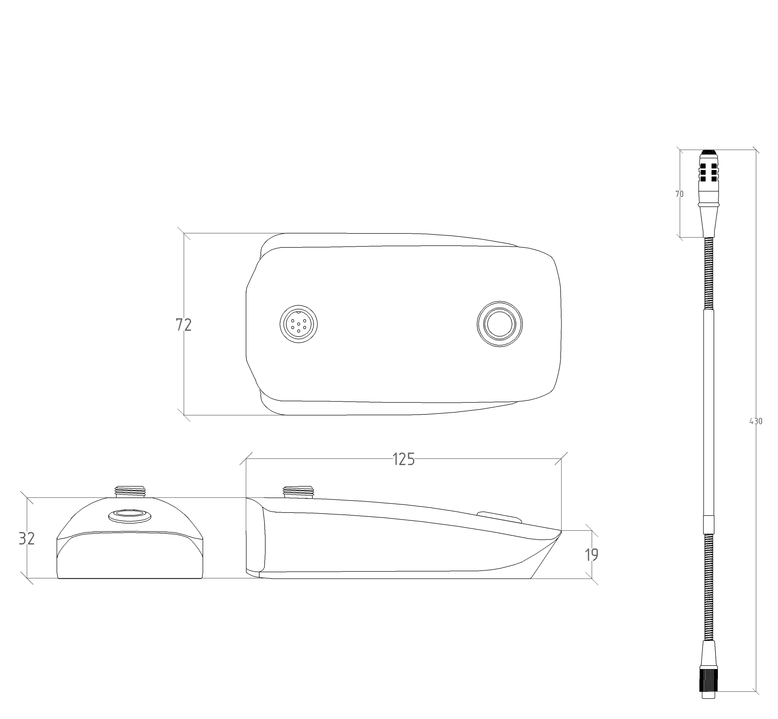 Микрофон характеризуется широким частотным диапазоном 30–20 000 Гц, высоким отношением сигнал/шум 96 дБ и импедансом 680 Ом, что обеспечивает чистый звук без искажений. Для работы требуется фантомное питание 24 В, подаваемое с модуля MS-CS-D20IP, а GPIO-контакты позволяют интегрировать кнопку и индикатор в систему управления.